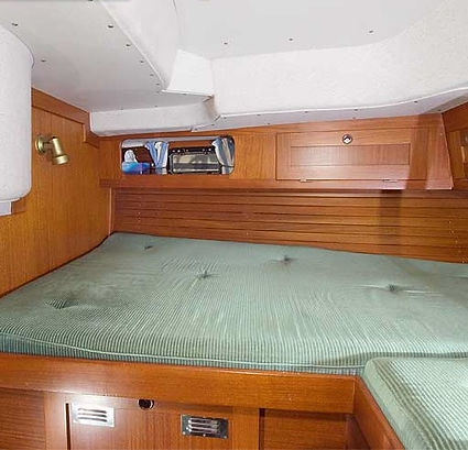 "Forever" has a considerable amount of upholstered cushions, mattresses and panels in the fore cabin, the saloon and aft cabin. The material was the original material, now thirty years old and was heavily worn and stained in places. We decided to change the whole lot and in December 2013, I brought all the cushions and panels from the saloon up to Bristol in a small hired car. The car, a sporty Citroen had a full length canvas sunroof that came in quite handy loading and unloading the cushions, mattresses and back rests.